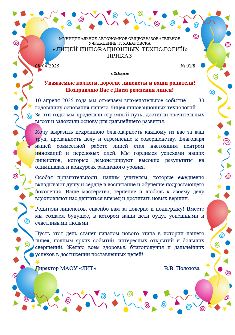 Муниципальное автономное общеобразовательное учреждение города Хабаровска "Лицей инновационных технологий"