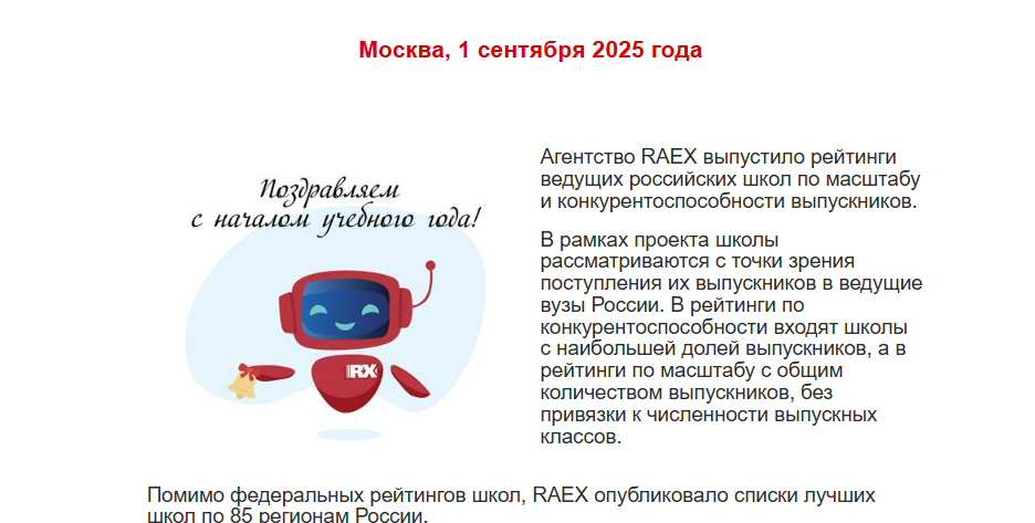 Агентство RAEX опубликовало рейтинги лучших школ России